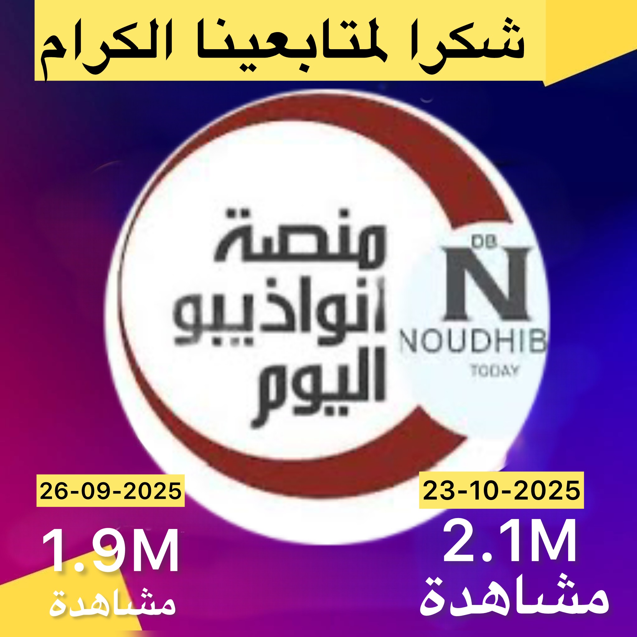 يتقدم طاقم منصة "نواذيبو اليوم "بجزيل الـ شكرً والامتنان لمتابعينا الكرام داخل الوطن وخارجه على ثقتهم ودعمهم المستمر. لقد حققنا بفضل متابعتكم زيادة معتبرة في عدد المتابعين والمشاهدات، ونعدكم بتقديم الأفضل دائما. #تابعونا #نواذيبو اليوم