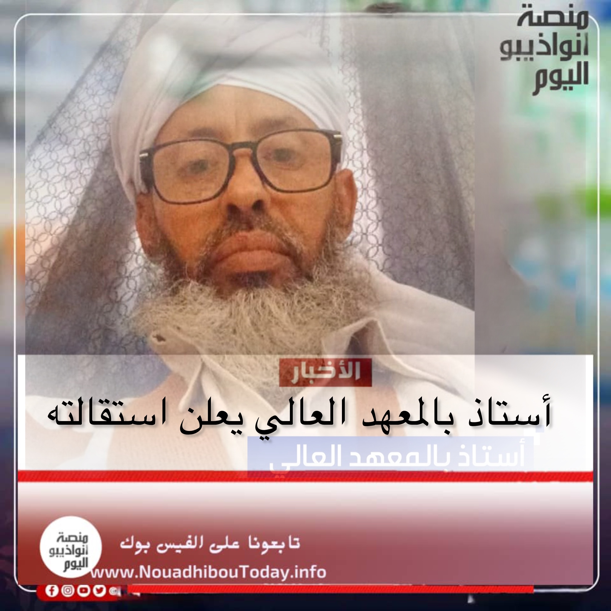 أعلن أستاذ مادة العقيدة والفكر الإسلامي ورئيس قسم الشريعة بالمعهد العالي للدراسات والبحوث الإسلامية العالم ولد أهلنا استقالته من الشعبة.